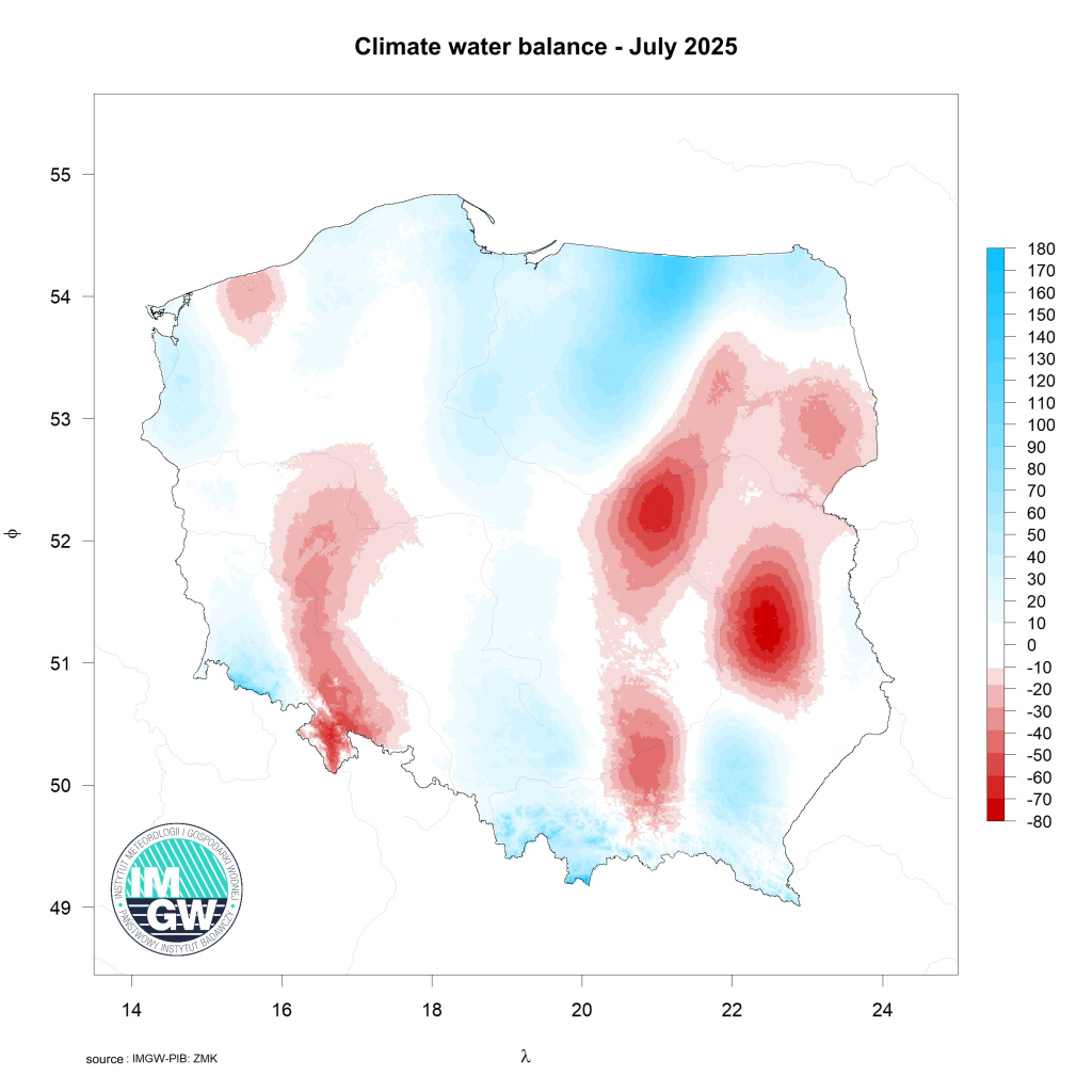 The summer of 2025 was a particularly contrasting period in Poland in terms of water balance. Although the water balance indicator itself is complex and takes into account both inflows (including atmospheric precipitation, surface and groundwater recharge) and losses (evaporation, plant transpiration, surface runoff), in practice its development depends primarily on precipitation and air temperature, which influences the intensity of evapotranspiration (including evaporation from soil surfaces and water bodies, as well as plant transpiration).